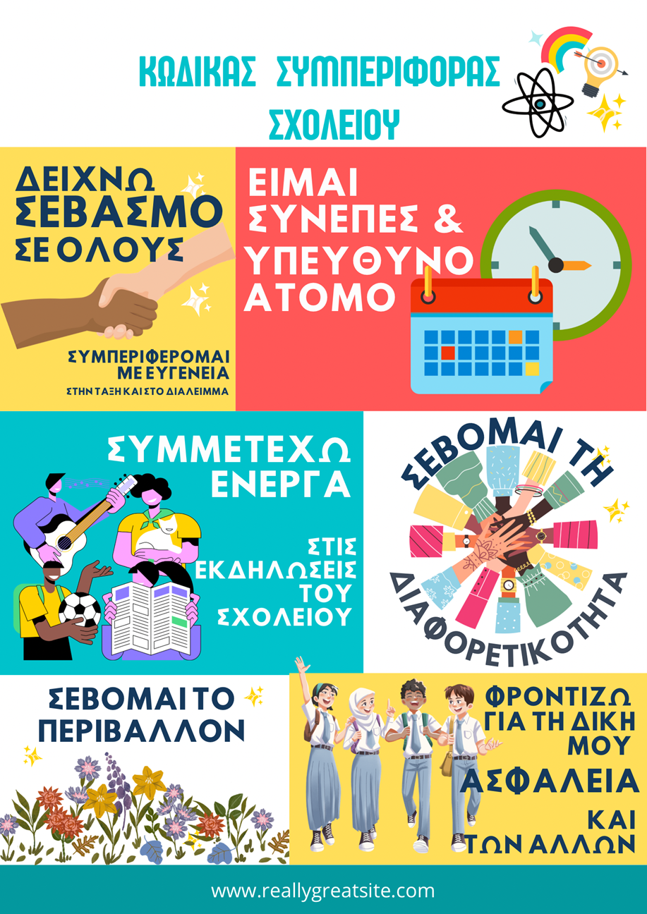 Ο Κώδικας Συμπεριφοράς καθορίζει τις αρχές σεβασμού, υπευθυνότητας και συνεργασίας. Στόχος του είναι ένα ήρεμο και υποστηρικτικό περιβάλλον για όλους.